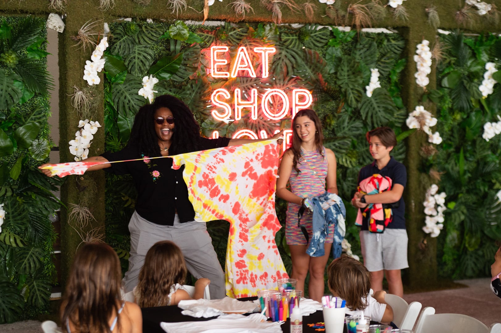 Octavia Yearwood demonstrates how to rip a tshirt in front of crowd.