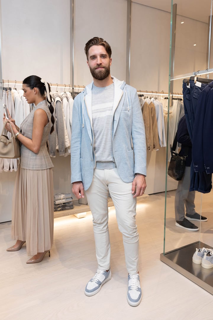 Last Tuesday, Founder and Creative Director of Eleventy Milano, Marco Baldassari, celebrated the opening of the brands first Miami store, notable guests to take part in the boutique opening at Bal Harbour Shops included: Miami Dolphins Braxton Berrios, Florida Panthers Aaron Ekblad and Brandon Montour, New York Giants Tommy Devito, Geoff Schneiderman (Eleventy North American Brand President), Randy and Gigi Whitman, Flavia Lowenstein (Production Designer), Elysze Held (Stylist), and Bianca Garcia and Victoria Herran were in attendance among others.
