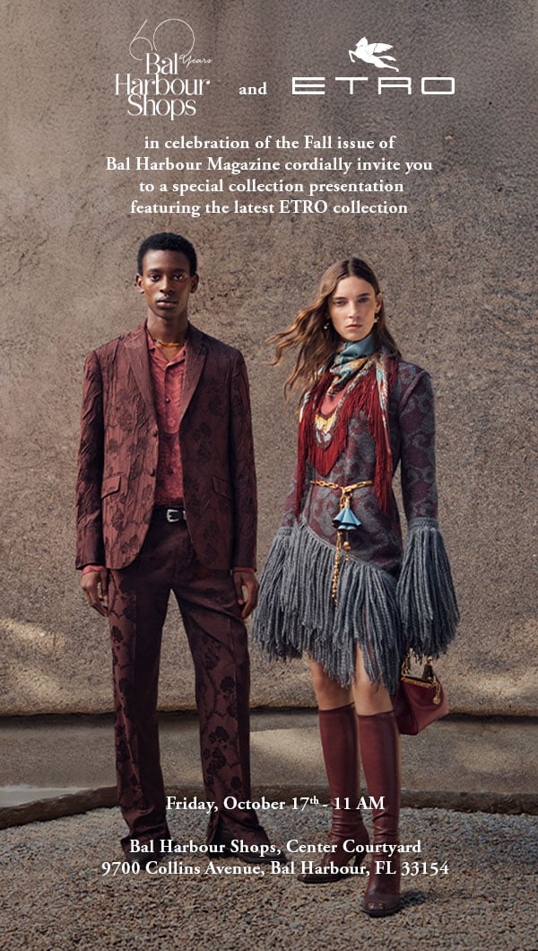 In celebration of the Fall issue of Bal Harbour Magazine we cordially invite you to a special collection presentation featuring the latest ETRO collection.