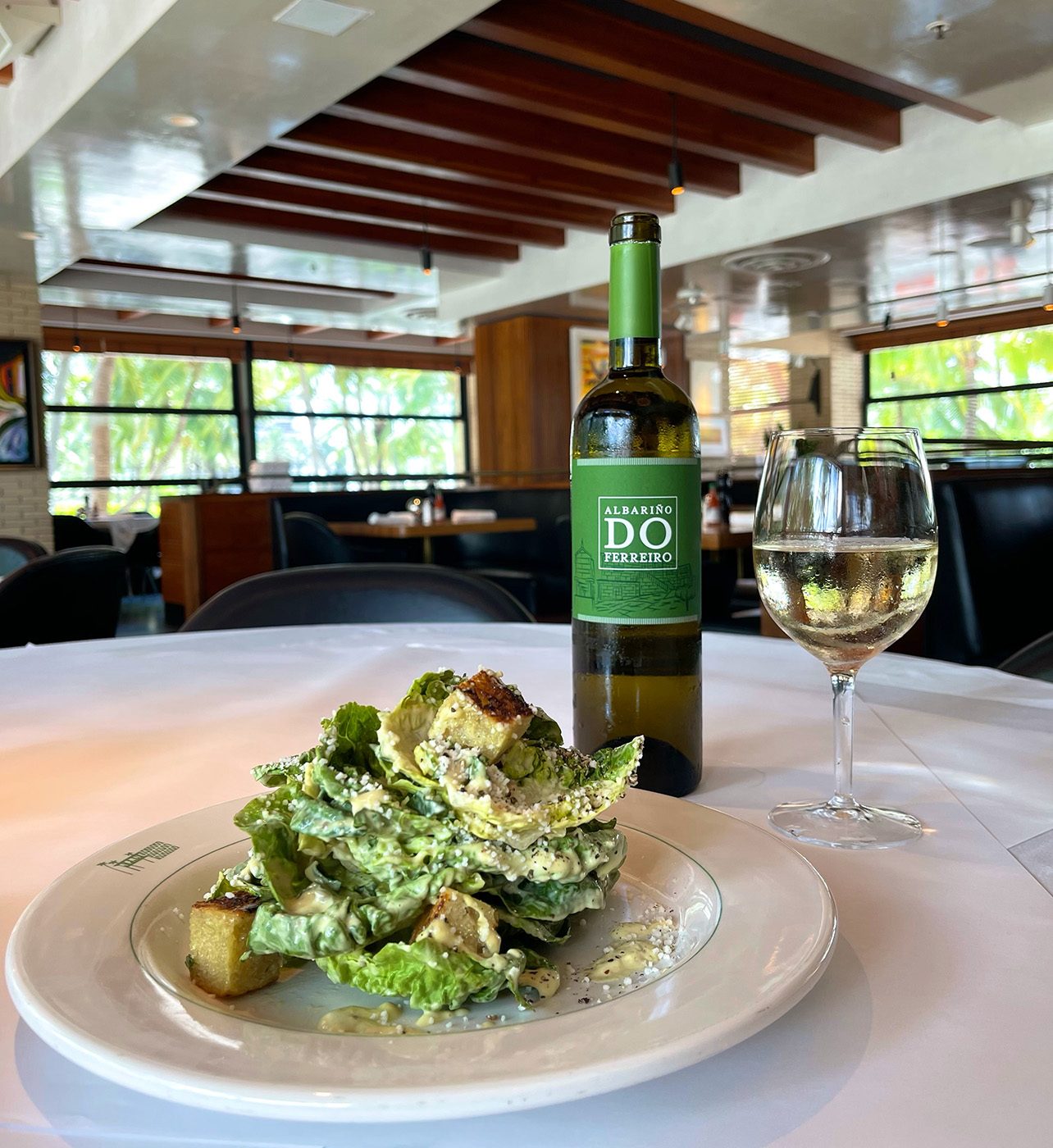 Hillstone Caesar salad paired with a glass of natural white wine