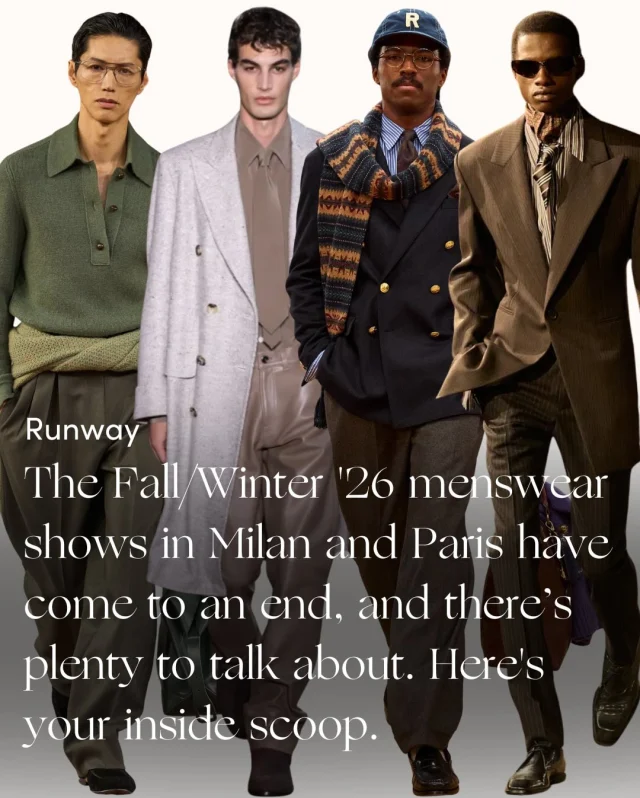 Ralph Lauren returned to Milan with a sportswear-infused collection honoring vintage Americana. Creative director Alessandro Sartori framed Zegna’s collection as a generational wardrobe. Scroll through for our take on all of the top menswear shows that just wrapped up at fashion weeks in Milan and Paris, and click the link in bio for the full report.